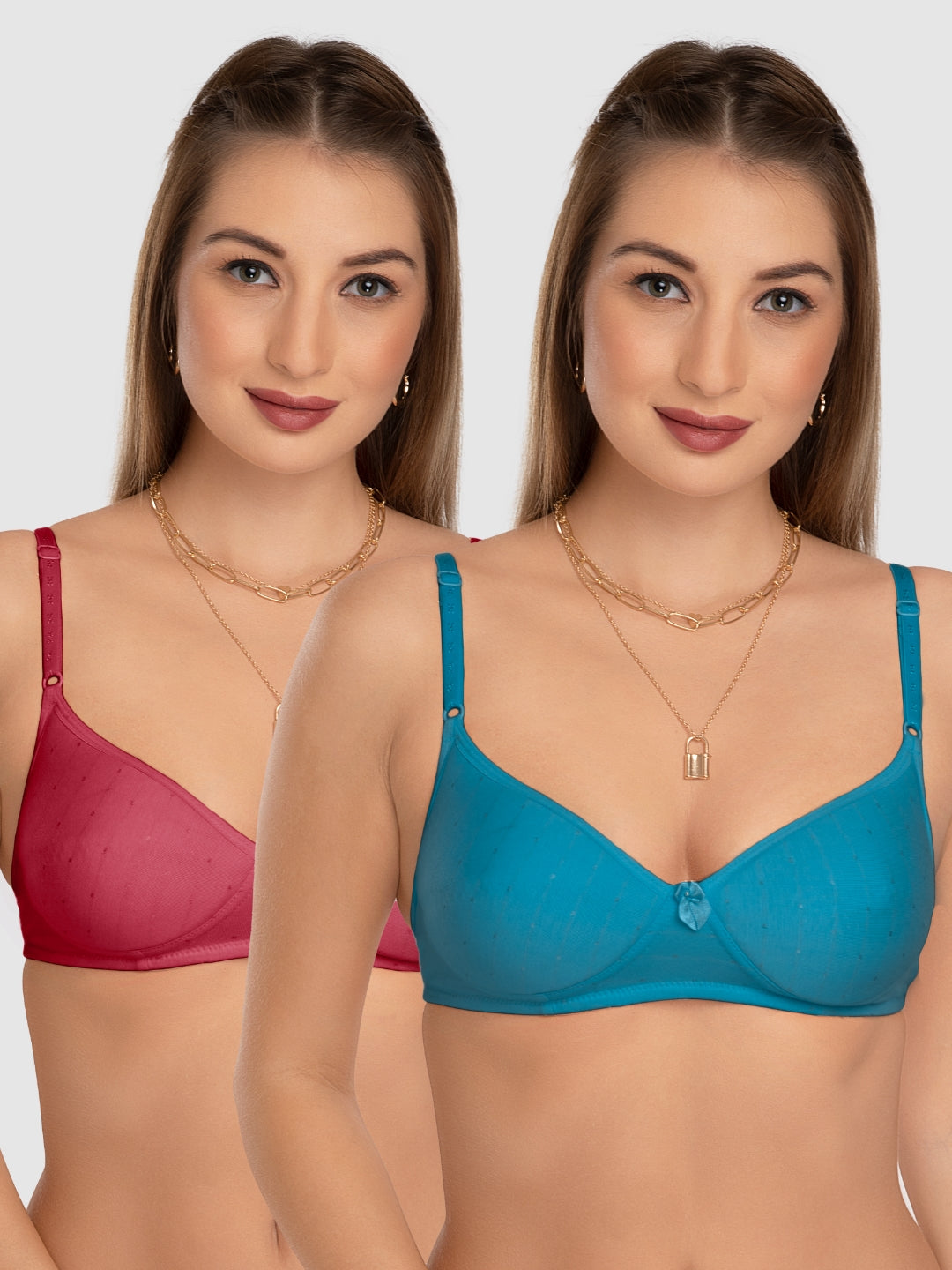 Daisy Dee Teal Blue and Crimson Red Padded Non-Wired Full Coverage T-Shirt Bra Pack of 2 - NCHL-T.BLUE/C.RED