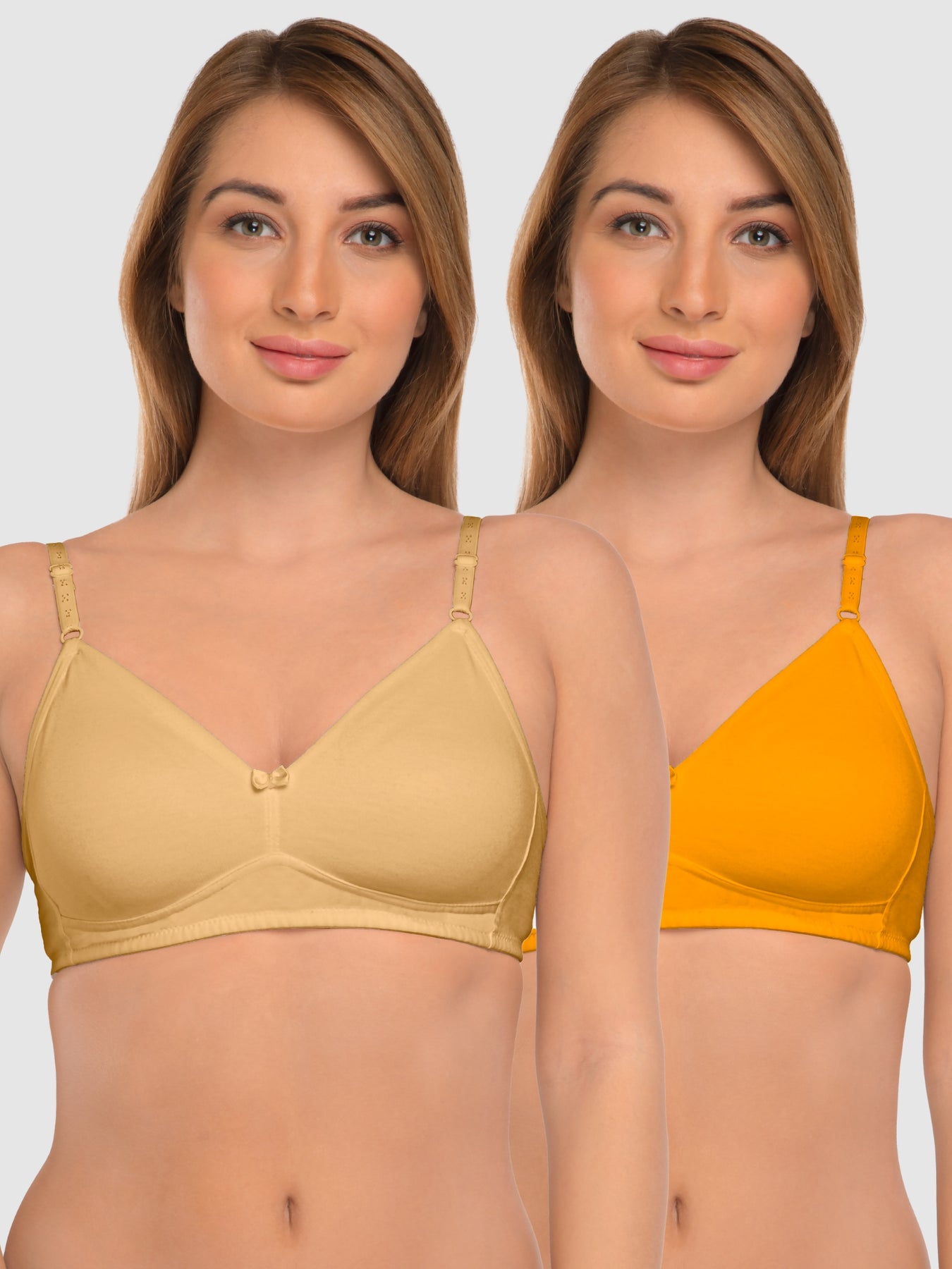 Daisy Dee Yellow and Skin Non Padded Non-Wired Full Coverage T-Shirt Bra Pack of 2 - NDSZN-Yellow/Skin
