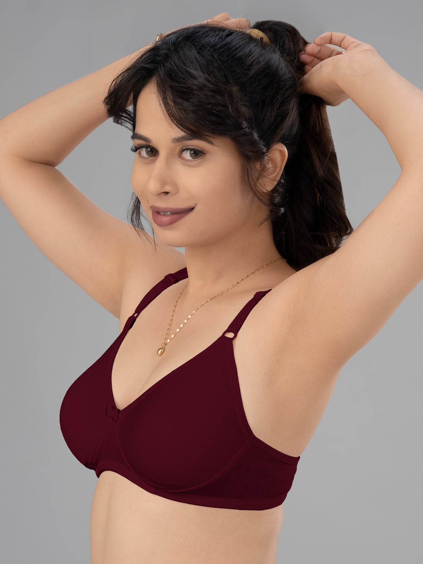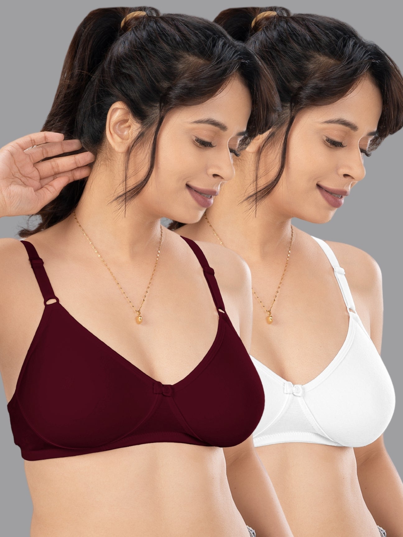 Lovable Maroon and White Non Padded Wirefree Bra Pack of 2 - ULTRA-MAROON/WHITE