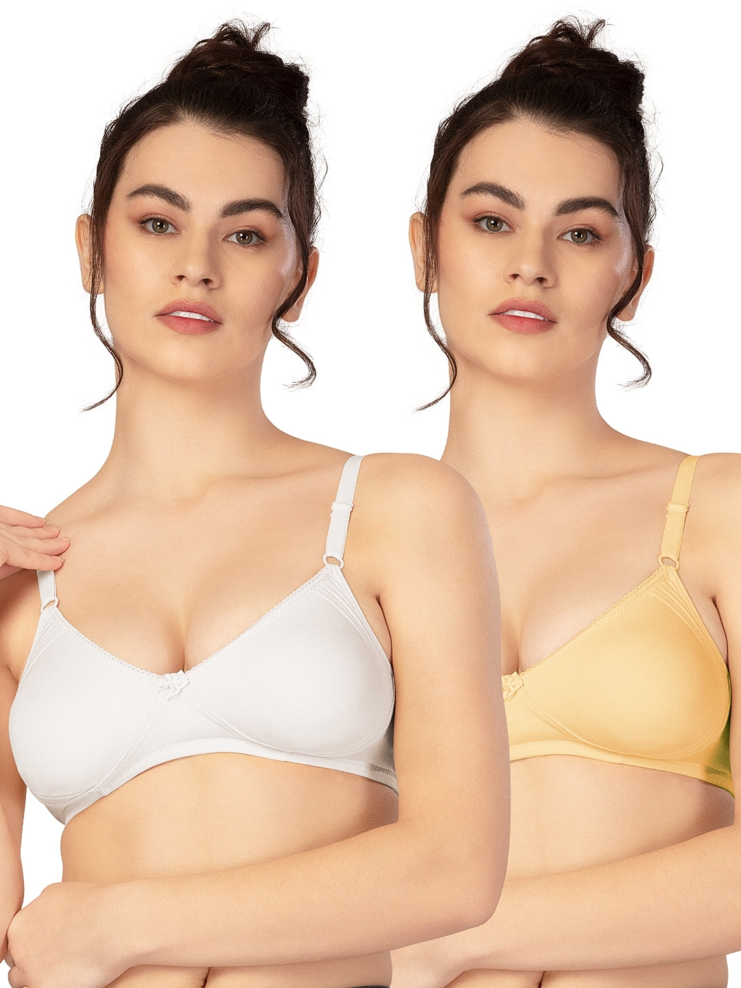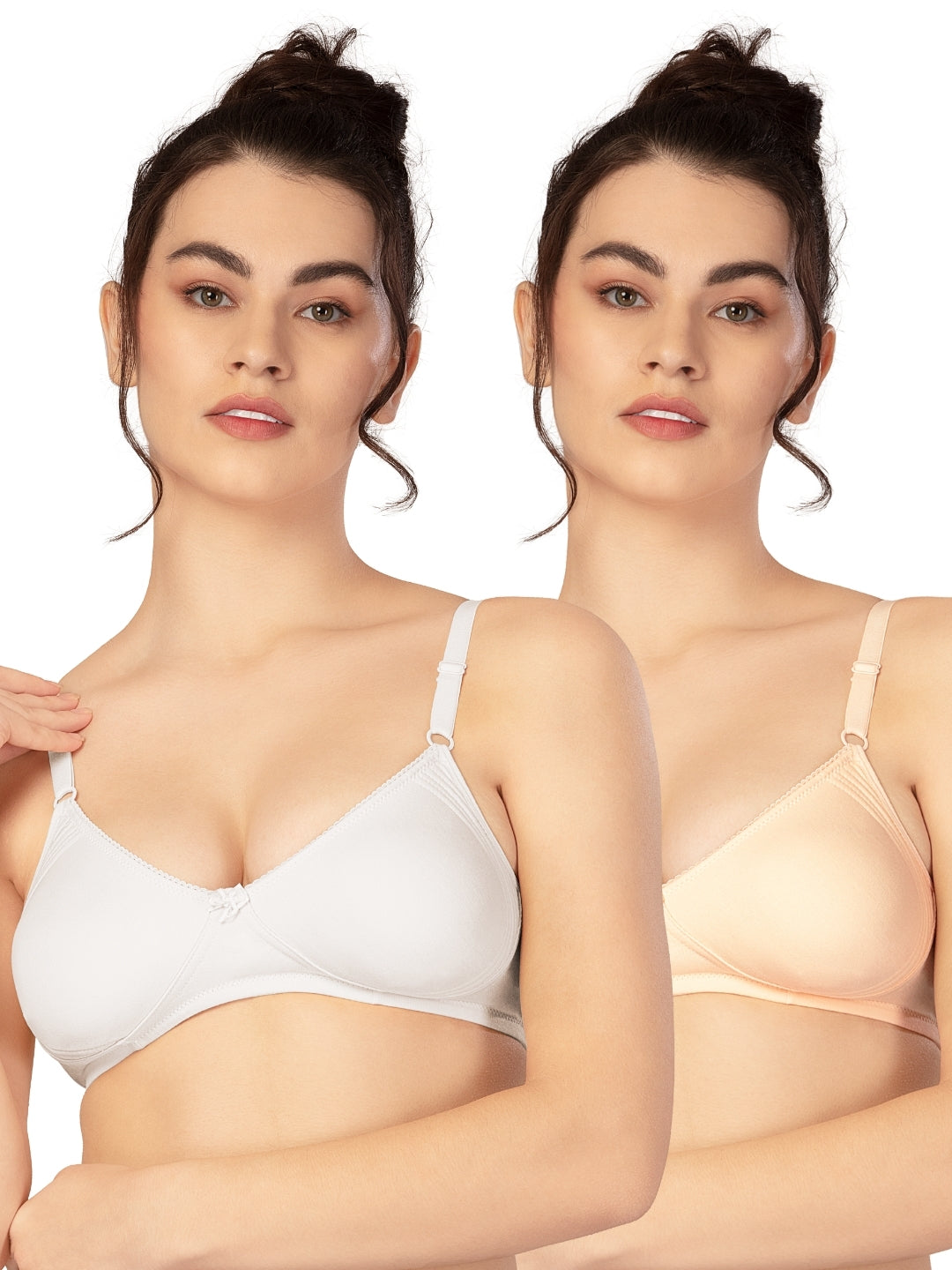 Lovable Multicolor Non Padded Non Wired Full Coverage Bra - (Pack of 2) CLASSIC-Skin/White