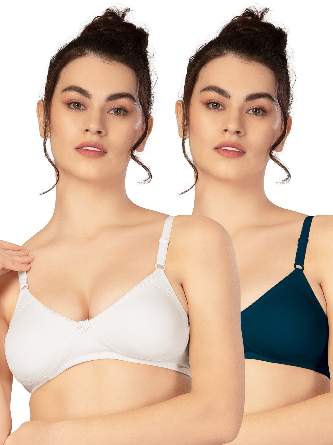 Lovable Multicolor Non Padded Non Wired Full Coverage Bra - (Pack of 2) CLASSIC-E.blue/White