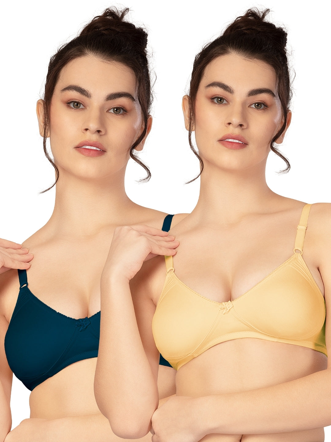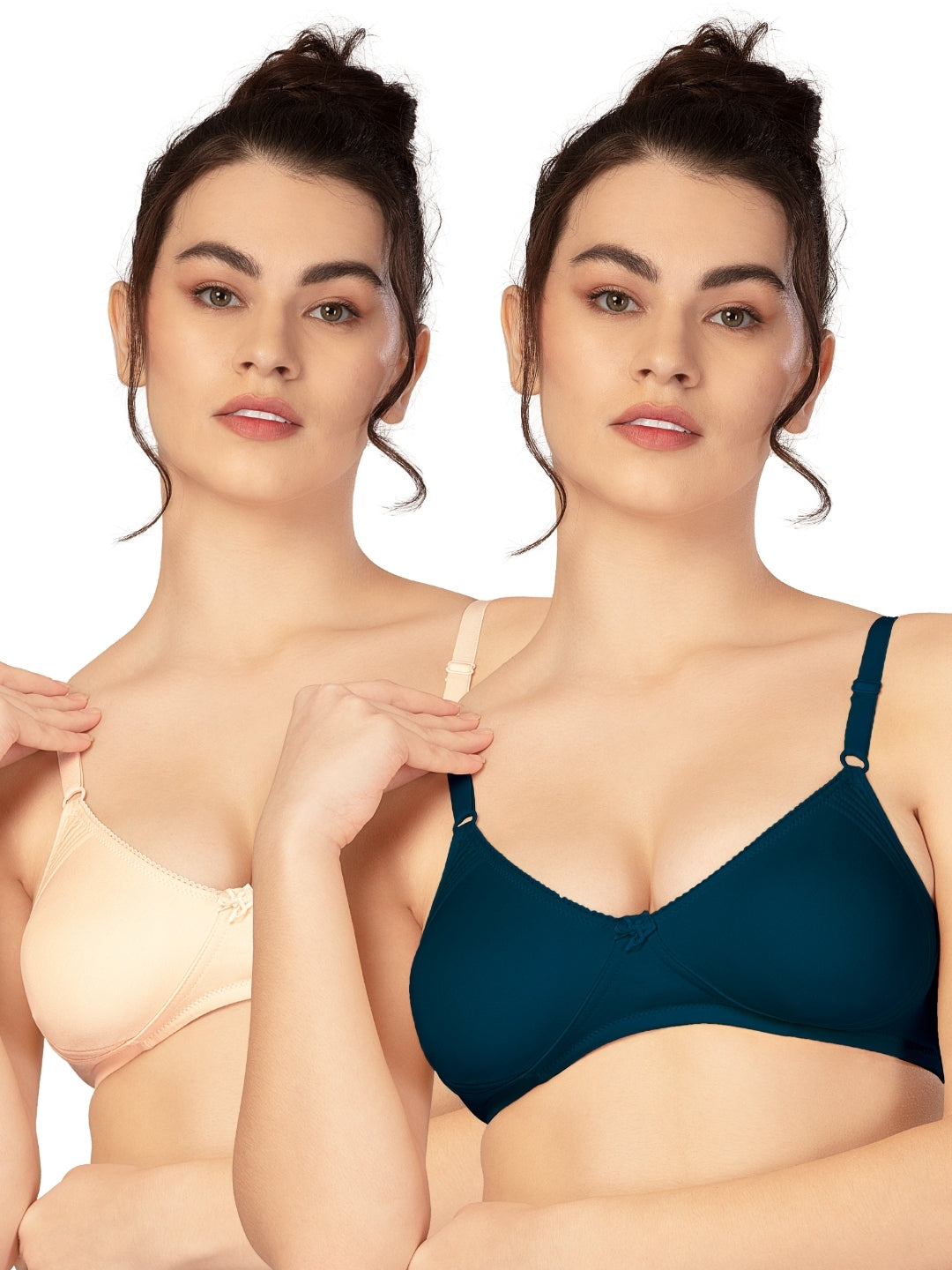 Lovable Multicolor Non Padded Non Wired Full Coverage Bra - (Pack of 2) CLASSIC-E.Blue/Skin