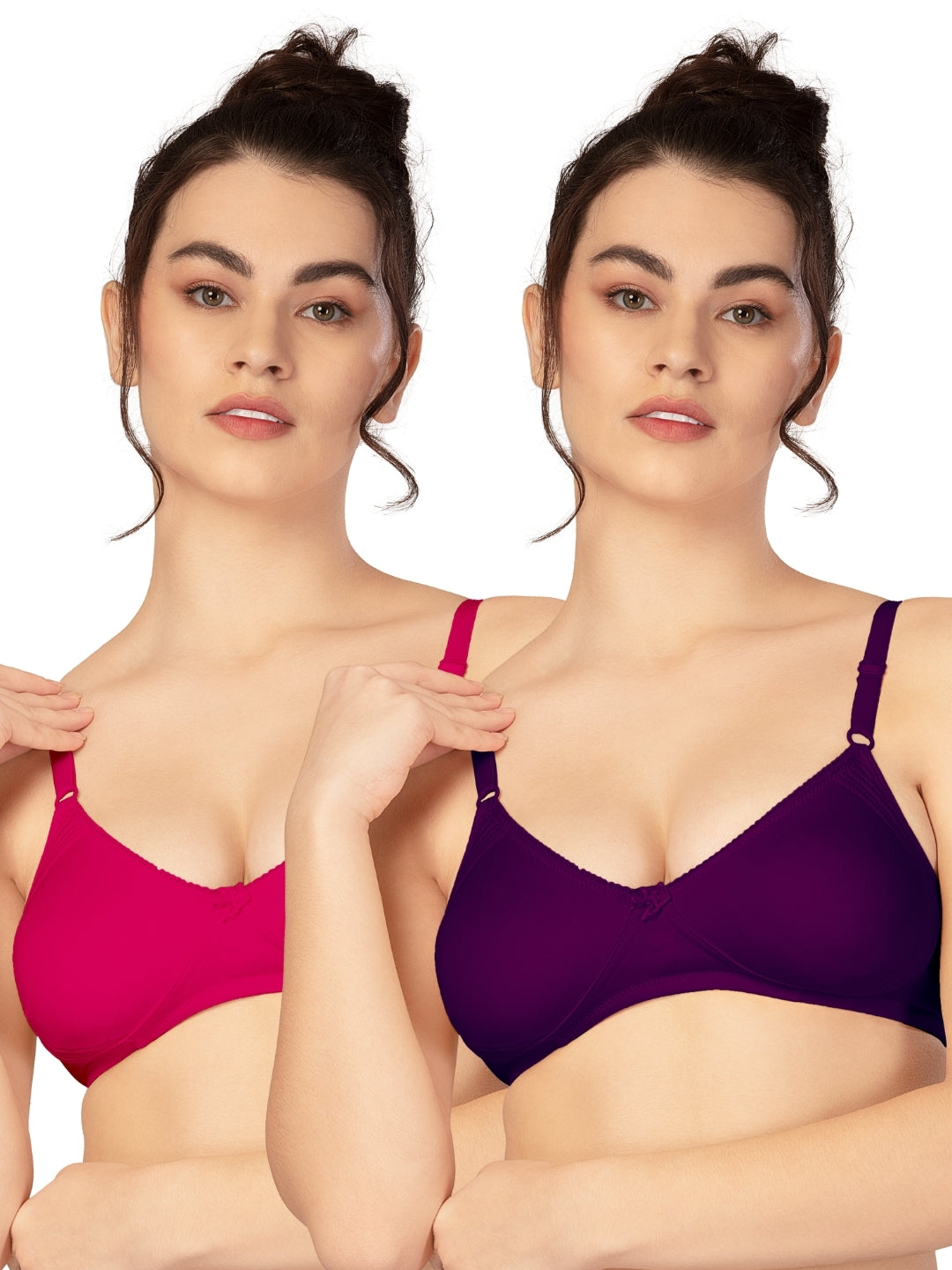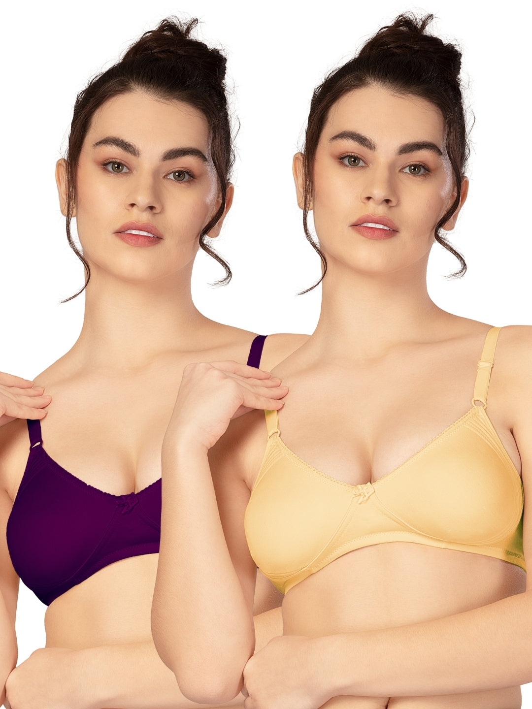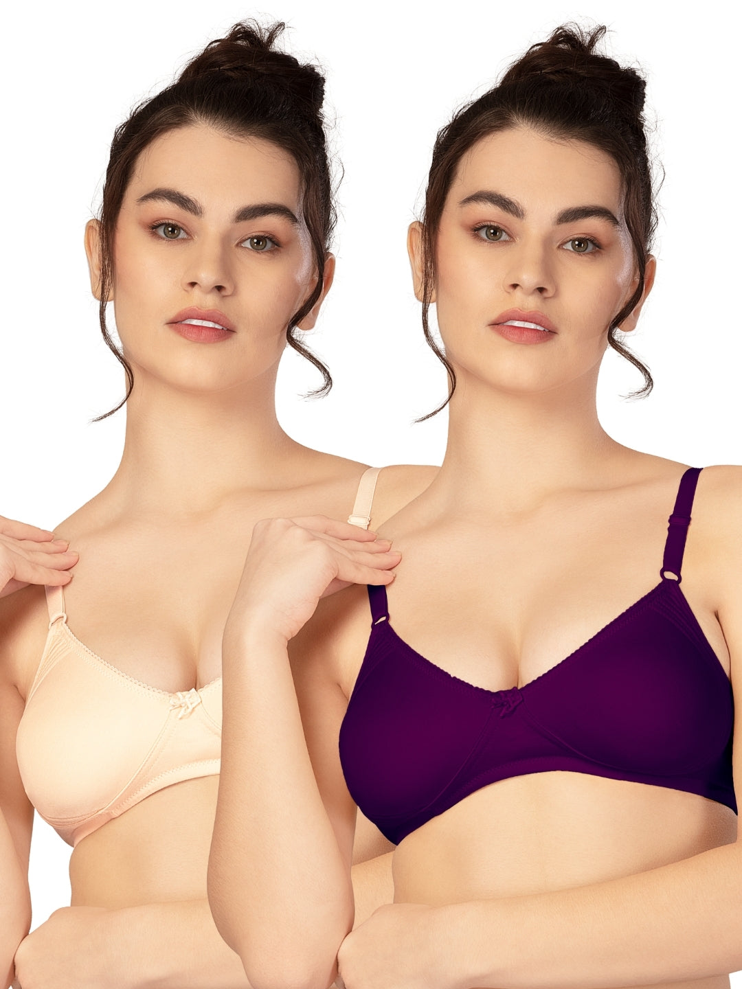 Lovable Multicolor Non Padded Non Wired Full Coverage Bra - (Pack of 2) CLASSIC-Skin/Wine