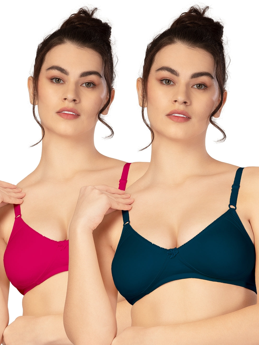 Lovable Multicolor Non Padded Non Wired Full Coverage Bra - (Pack of 2) CLASSIC-E.blue/Coral Red