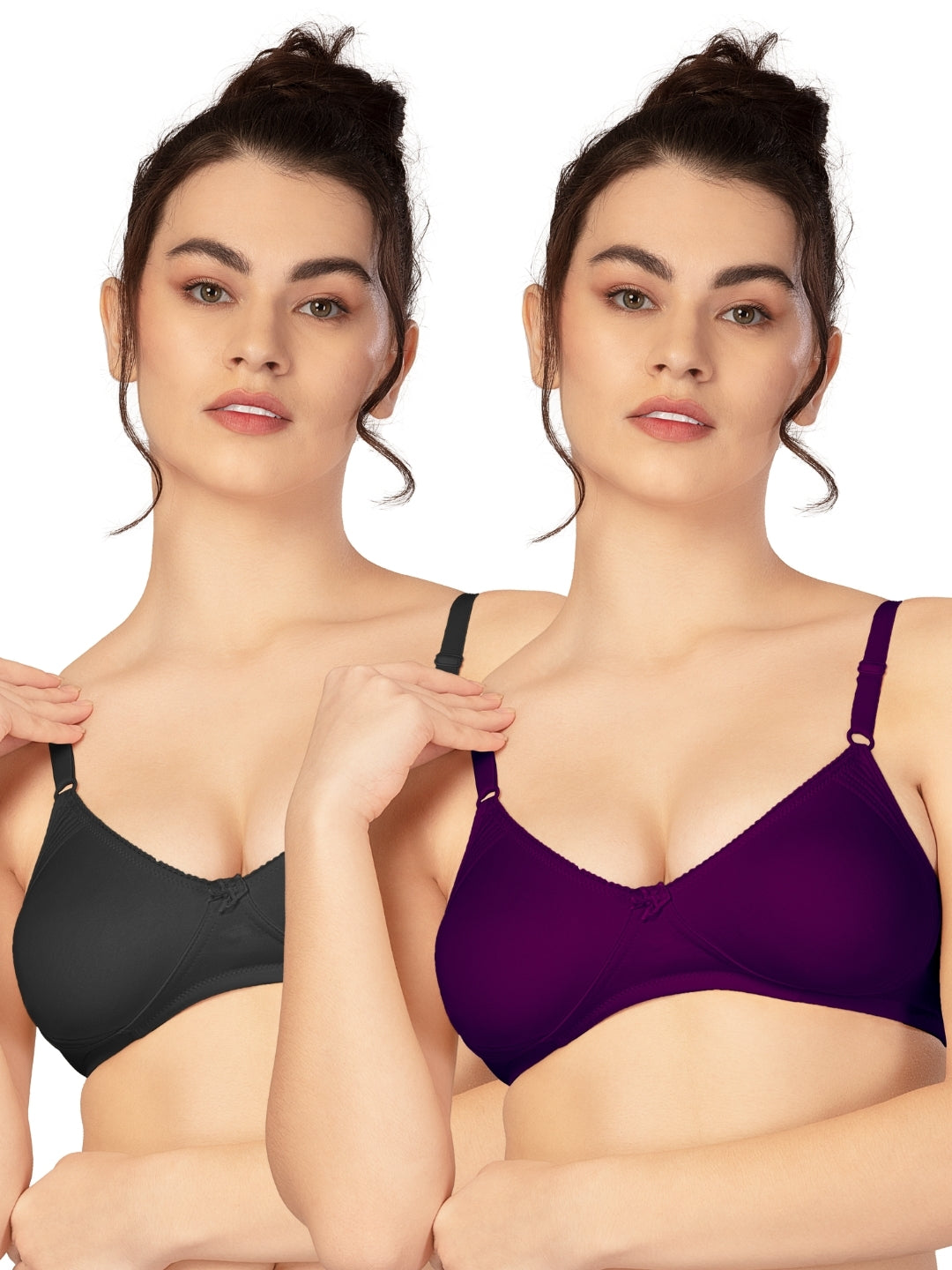 Lovable Multicolor Non Padded Non Wired Full Coverage Bra - (Pack of 2) CLASSIC-Black/Wine