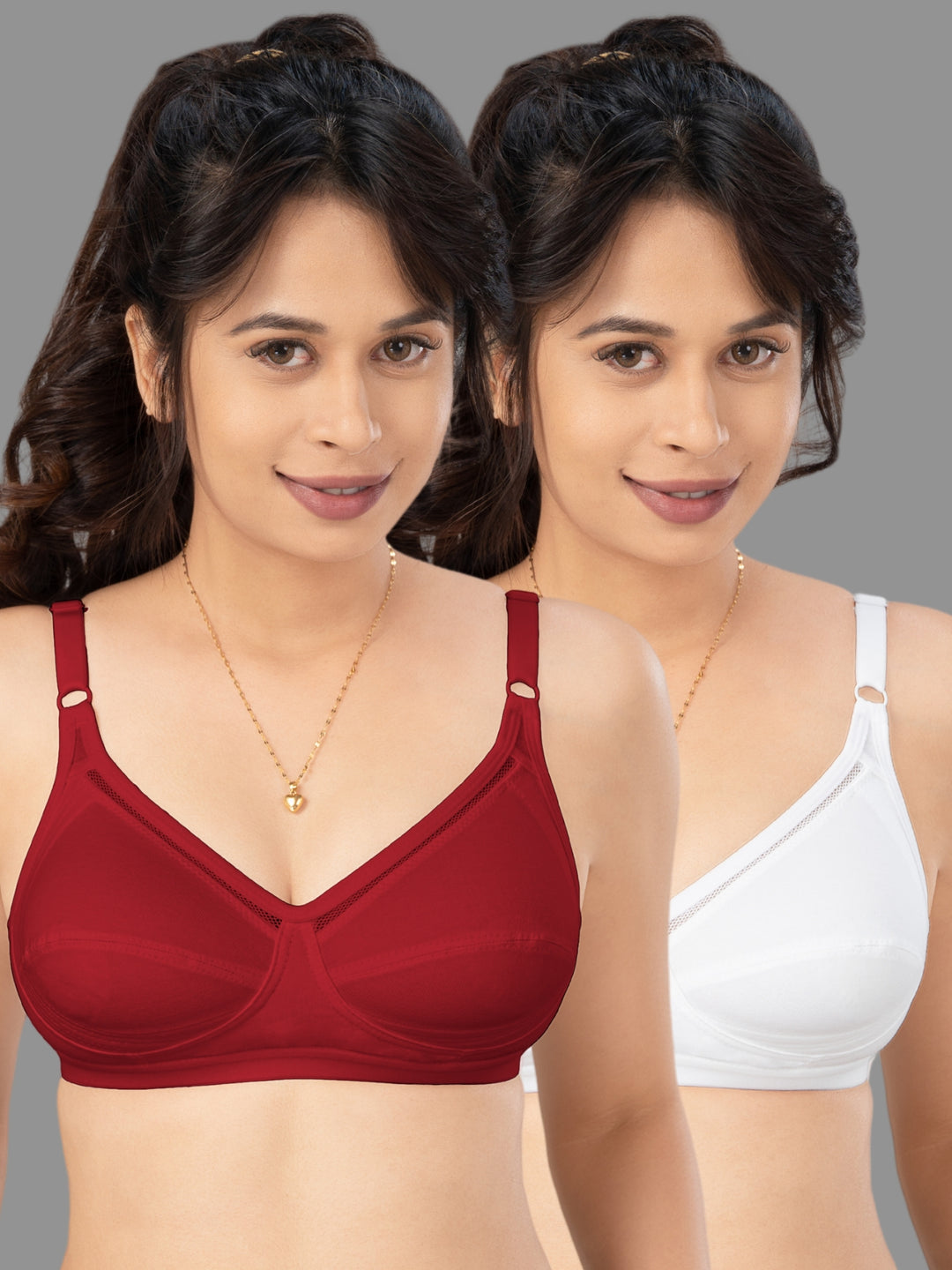 Lovable Multicolor Non Padded Non Wired Full Coverage Bra - (Pack of 2) CLASSIC-Coral Red/Wine