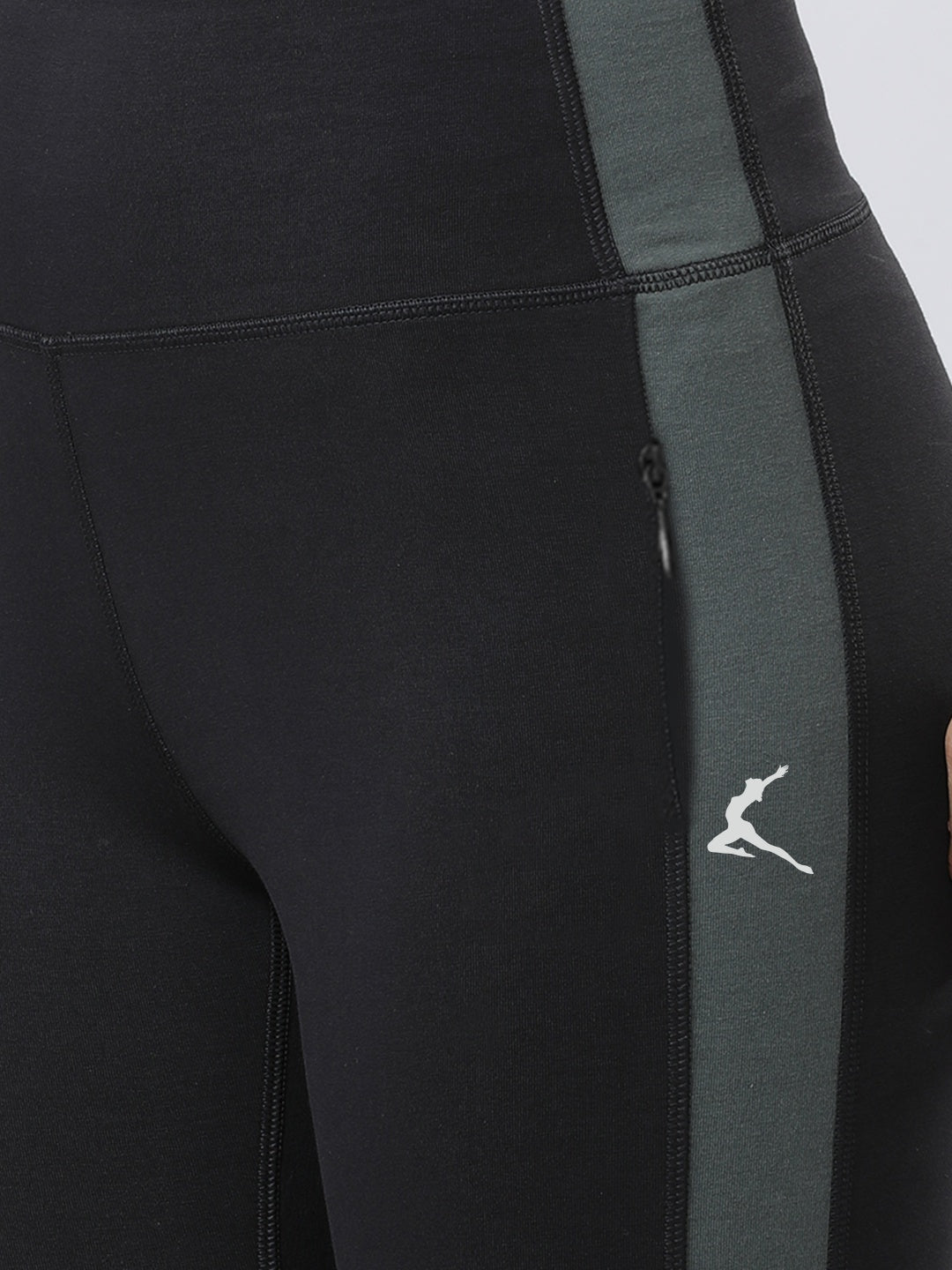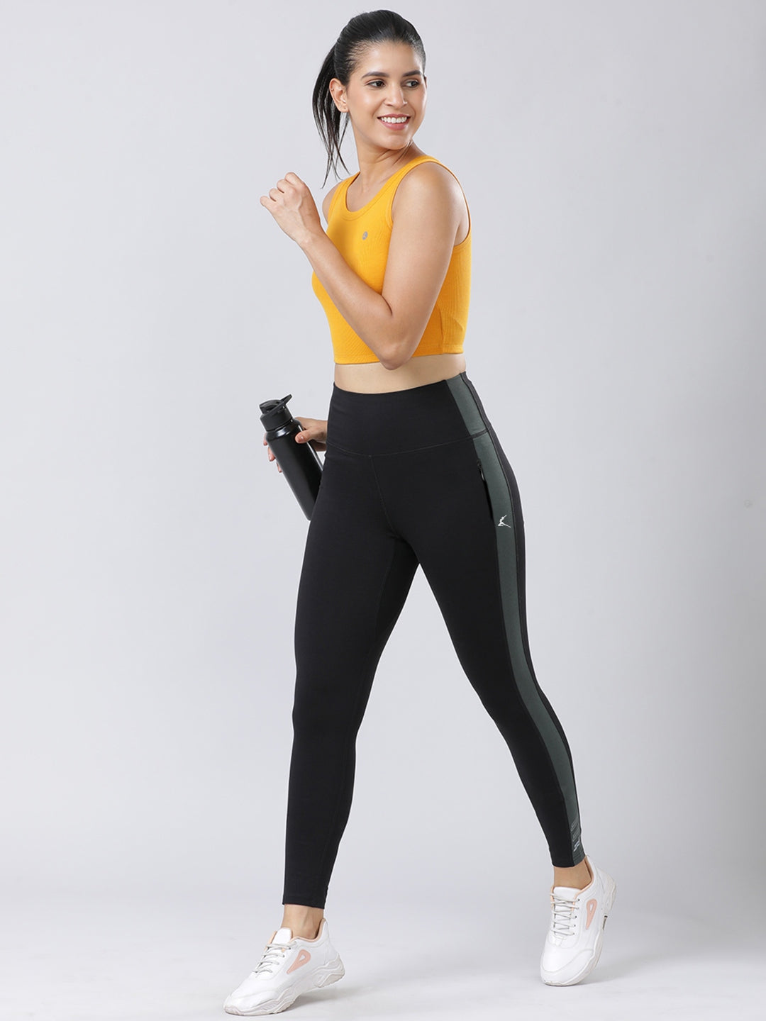 Introducing ankle length high waisted tights tailored for both comfort & style. Crafted from soft cotton fabric with ample stretchability, these tights feature eye-catching contrasting side panels, elevating your active wardrobe with a perfect blend of functionality and fashion-forward design